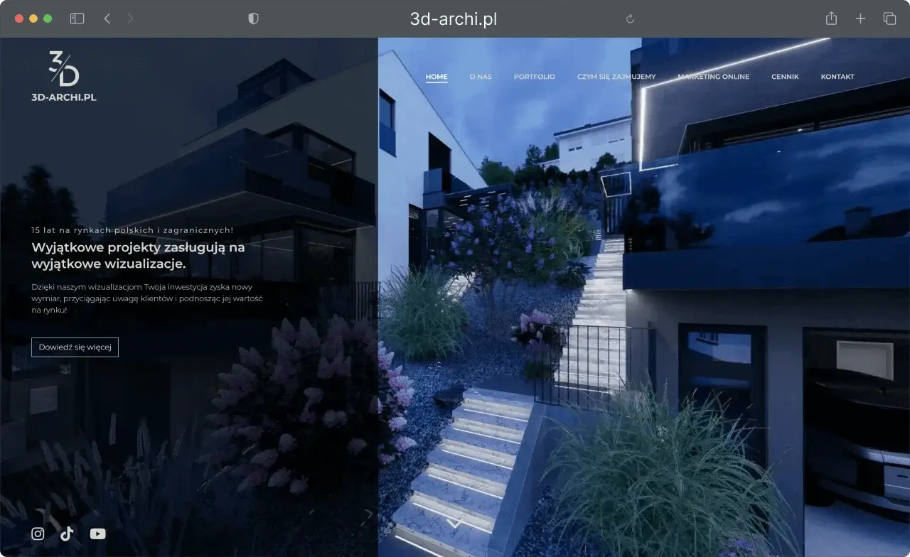 Autorski projekt o eleganckim i minimalistycznym designie, podkreślający profesjonalizm oraz estetykę prezentowanych realizacji.